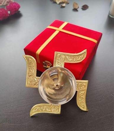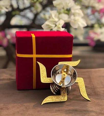 Handmade Durable Metal Aluminum Swastik Puja Diya Velvet Box Superb Quality Modern Style Round Diwali Festival Decor Silver Gold