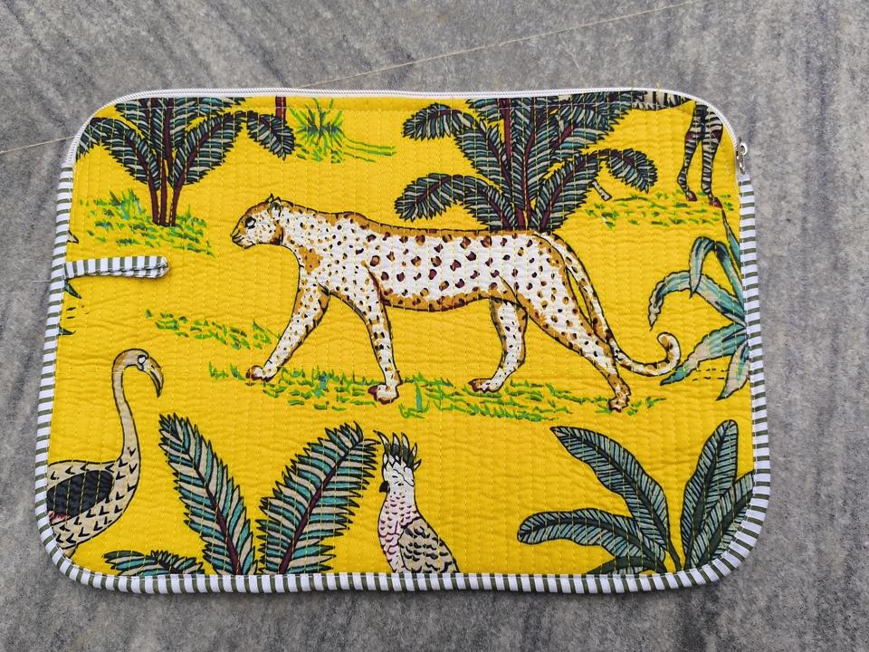 Handmade Durable Modern Large Capacity Soft Floral Printed Cotton Fabric Eco-Friendly Laptop Sleeve Case