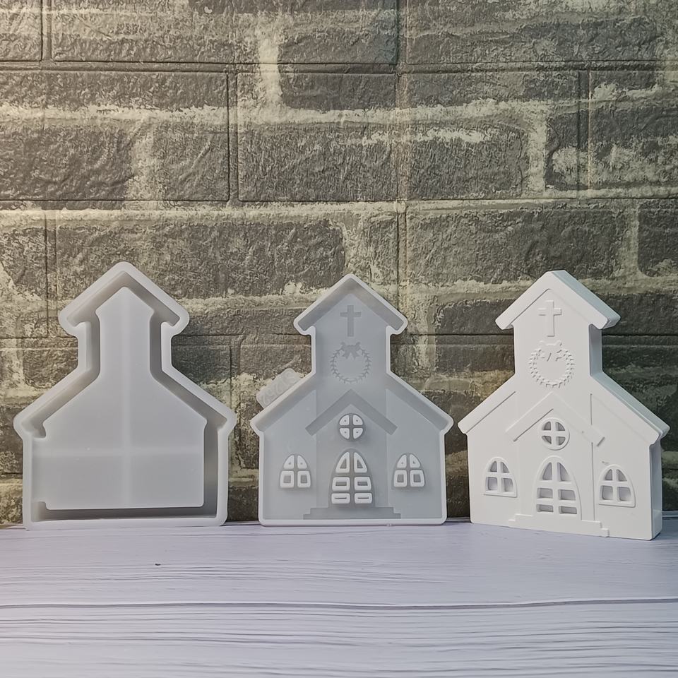 Handmade Eco-Friendly 3D Silicone Cake Tools S1251 PC Church House Base Art Storage Molds Resin New Eco-Friendly Cake Tools