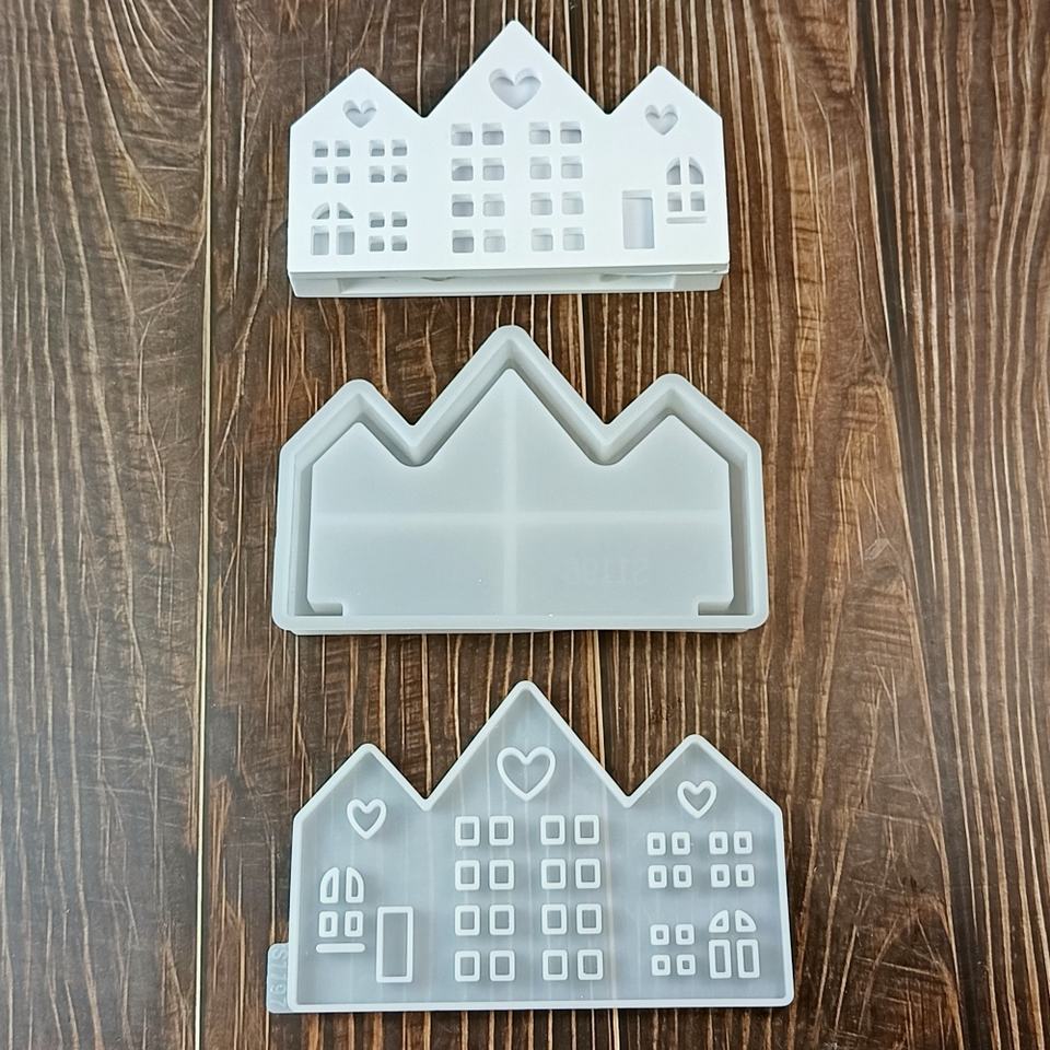 Handmade Eco-Friendly 3D Silicone Fondant Tool Reusable Square Storage Molds S1197 Three-Story House Projection Wall