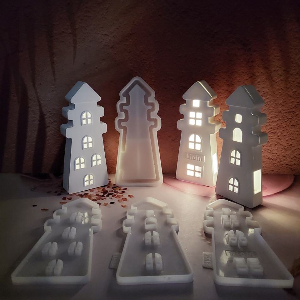 Handmade Eco-Friendly Cartoon Silicone Cake Tools S1374 Resin Art Storage Plaster Lighthouse Projection Wall Ornament Storage