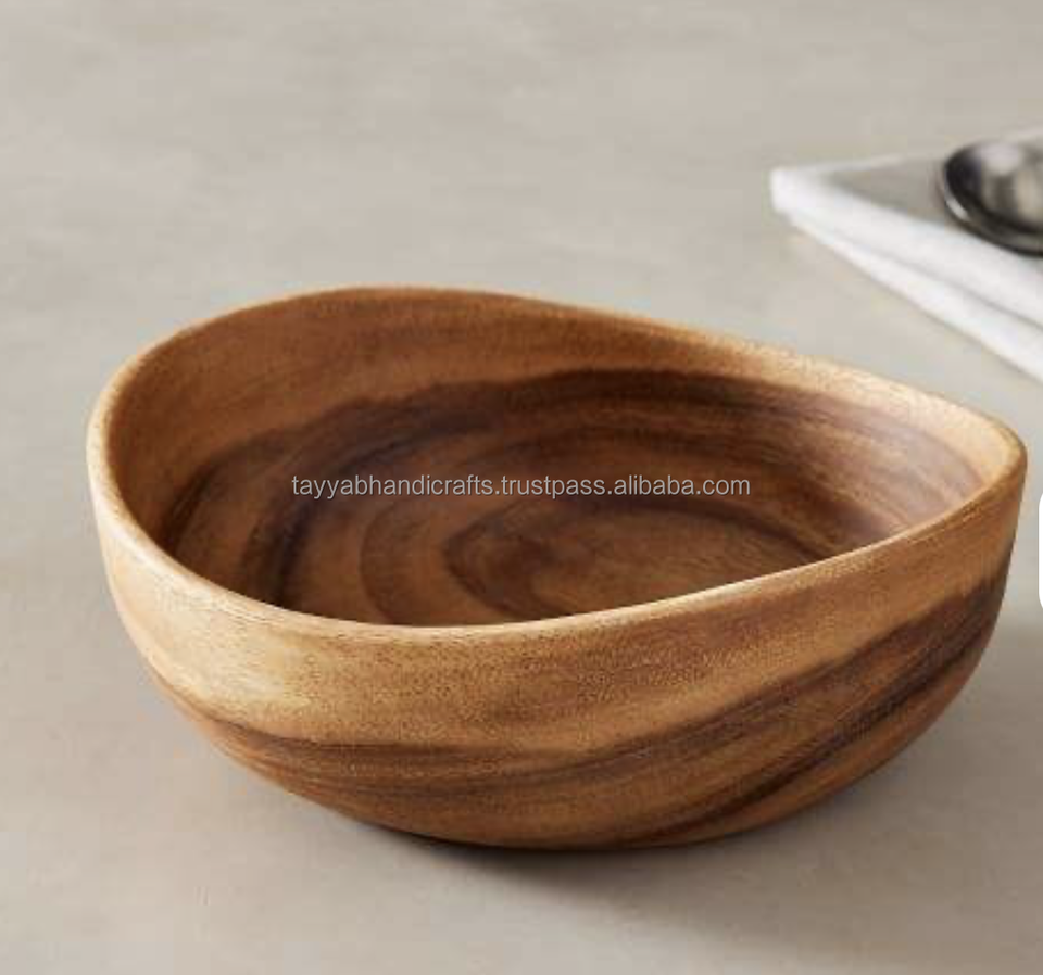 Handmade Eco-Friendly Classic Large Capacity Natural Acacia Wood Snack Salad Fruit Food Soup Noodle Dough Bowl Premium Bowls