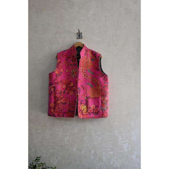 Handmade Eco-Friendly Cotton Quilted Vest Jacket for Women with Button Closure Block Print Stylish Sleeveless Outerwear