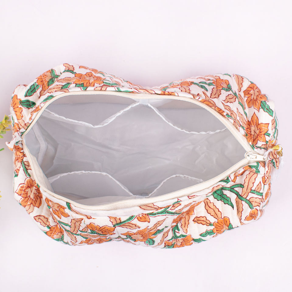 Handmade Eco-Friendly Cotton Toiletries Bag Zipper Closure Large Capacity Lightweight Cosmetic Pouch Bohemian Fashionable Prints