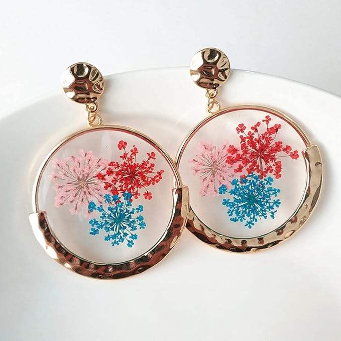 Handmade Eco-Friendly Hand-painted Epoxy Resin High Quality Floral Earrings Natural Color Combination Contemporary Fashion