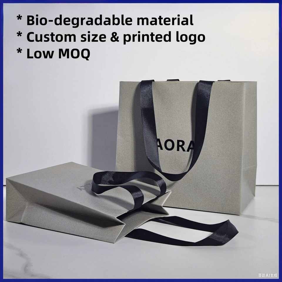 Handmade Eco-Friendly Luxury Kraft Aseptic White Coated Bags Ribbon Embossed Offset Printed Custom Logo for Clothing Fur Gift