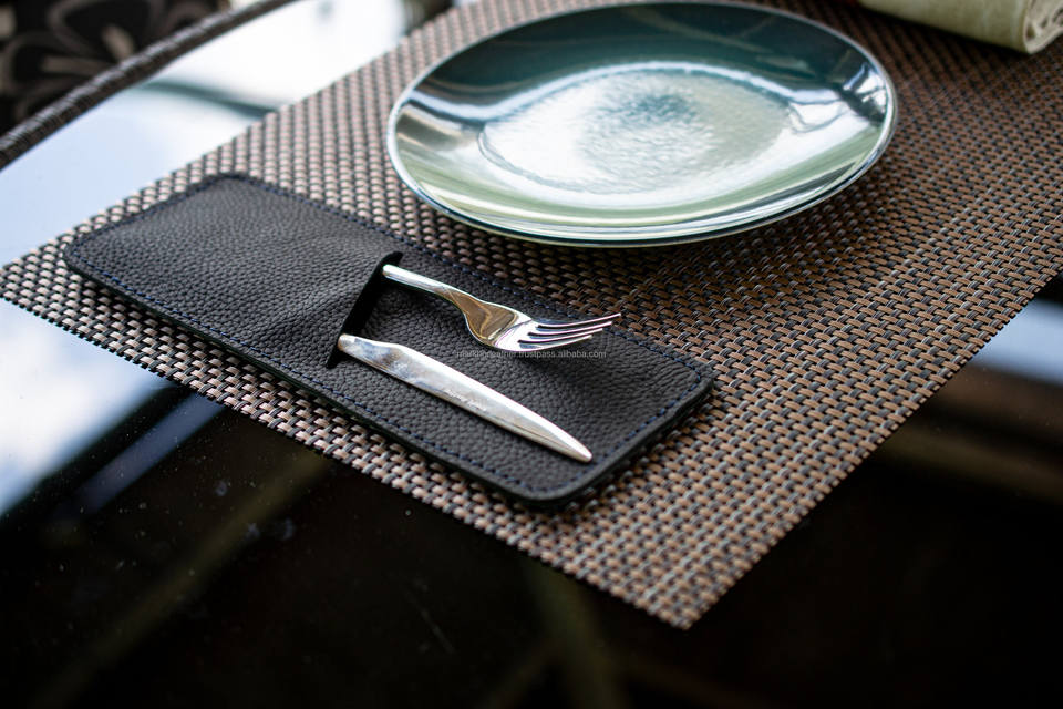 Handmade Eco-Friendly Luxury Leather Cutlery Holder for Restaurant Dining Table Organizer Rustic Flatware Storage Case LRCH-0007