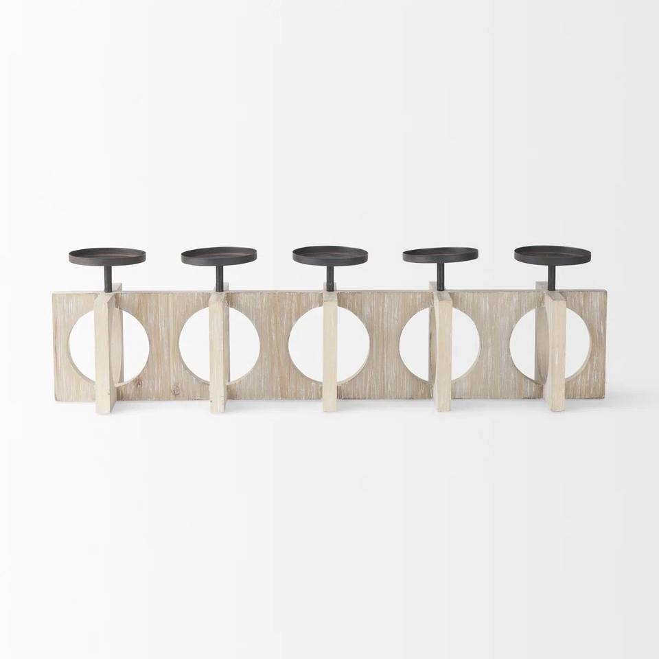 Handmade Eco-Friendly Luxury Mango Wood Cylinder Tabletop Candelabra for Hotel Decoration