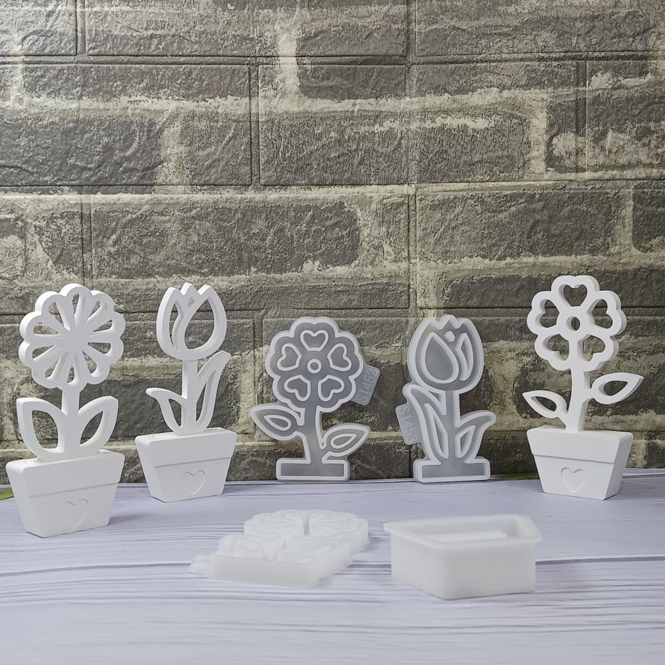 Handmade Eco-Friendly Plastic Resin Art Storage Mold PC Ins Cartoon Silicone Potted Flowers Ornament Tools S1454 Tray Mold
