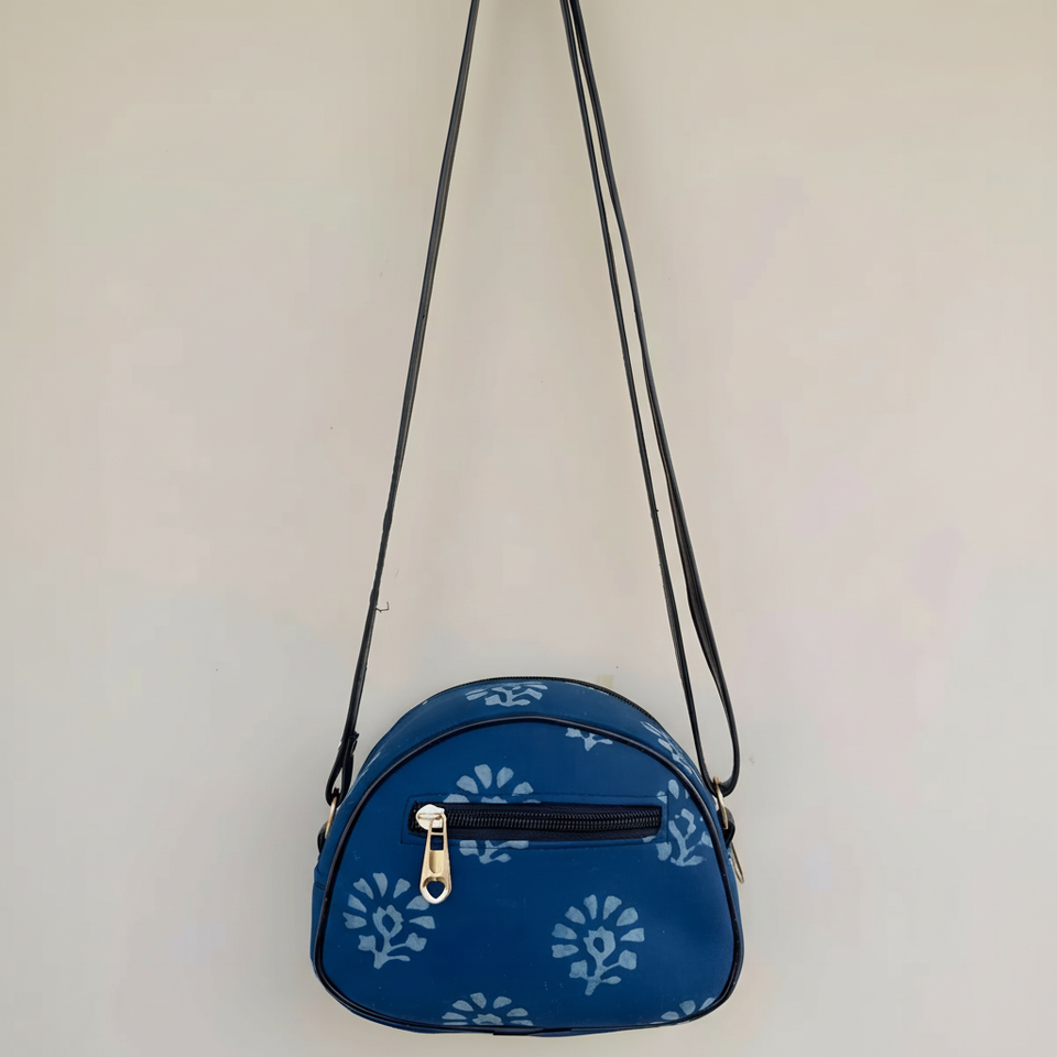 Handmade Eco-Friendly Pure Cotton Indigo Women's Messenger Bag Zipper Closure Floral Decoration Boho Style Bag