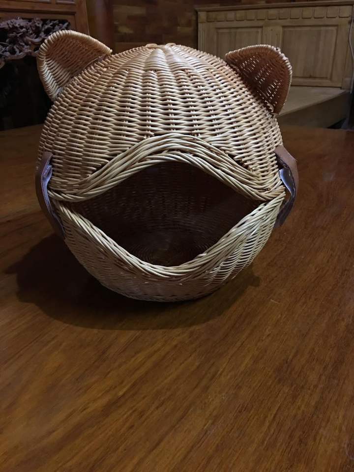 Handmade Eco-Friendly Rattan Pet Bed for Cats & Dogs, Sustainable Wicker Basket with Animal Pattern, Breathable, Made in Vietnam