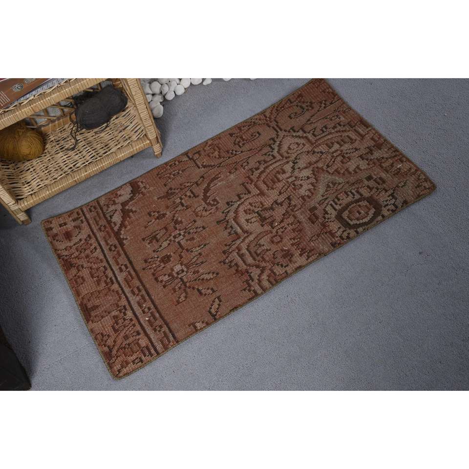 Handmade Eco Friendly Vintage Brown Wool Medium Pile Patchwork Rug Large Area 1.9 X 3.4ft Rectangular Dining Room Latex Backing