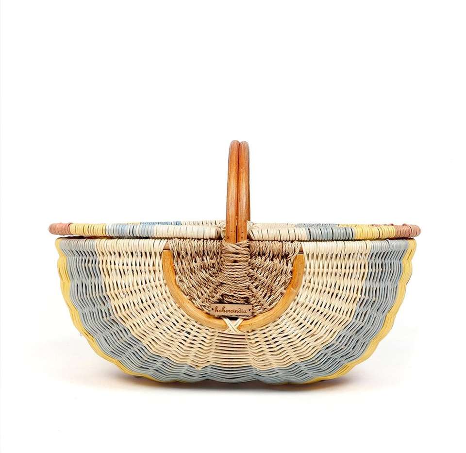 Handmade Eco-Friendly Wicker Rattan Picnic Food & Drink Storage Basket Multifunctional Woven Baskets for Outdoor Storage