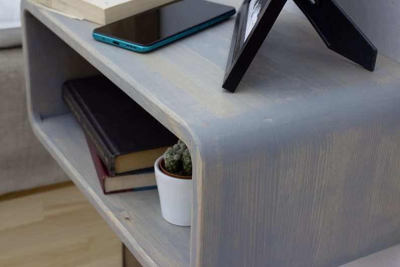 Handmade Eco-Friendly Wooden Floating Nightstand Mid Century Modern Design Wall Mounted Shelf for Bedroom Living Room Storage