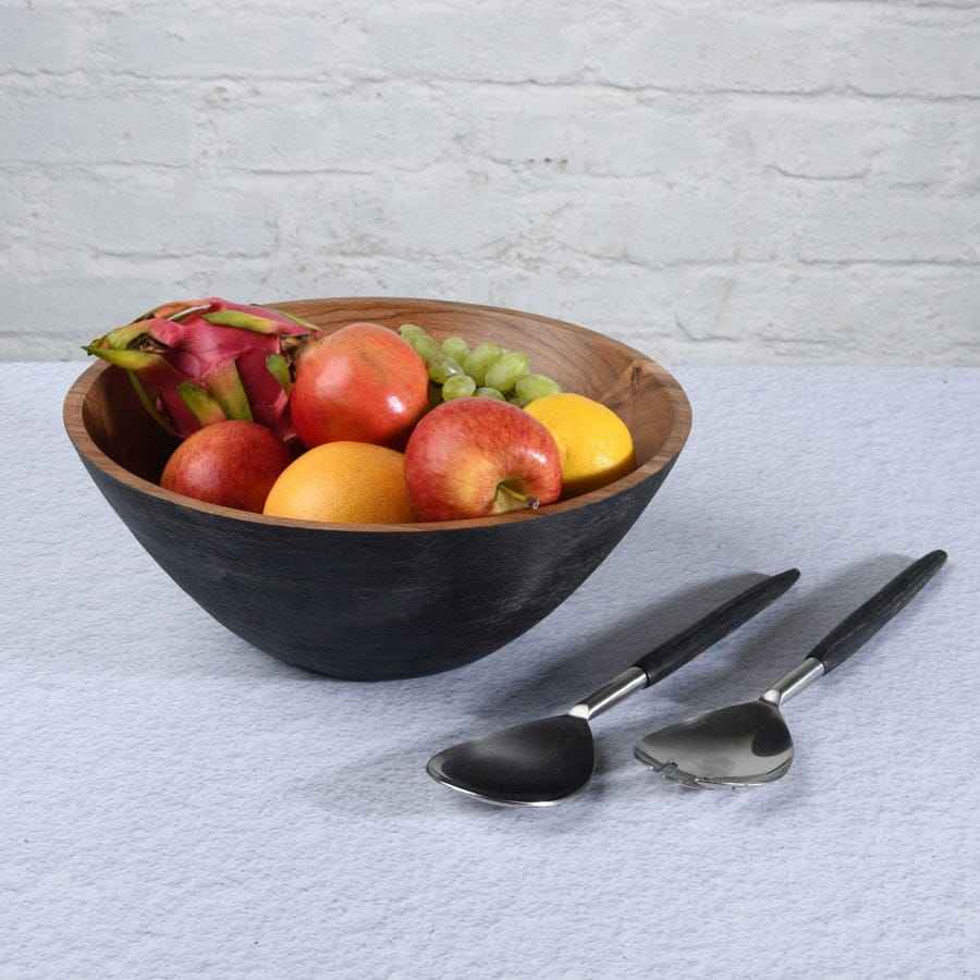 Handmade Eco-Friendly Wooden Salad Bowl with Bright Enamel Coating Dishwasher Safe for Daily Use & Decorative Dining