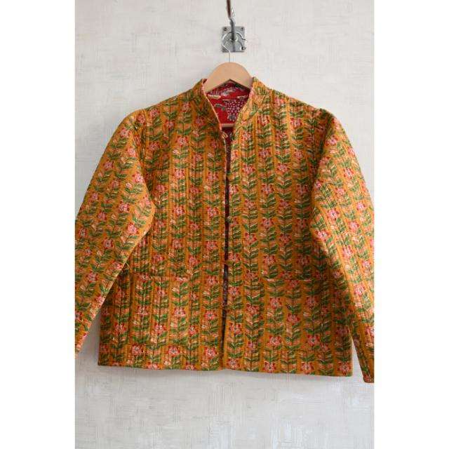 Handmade Eco-Friendly Woven Cotton Quilted Jacket Reversible Floral Block Print Long Sleeve Winter Warm Button-Up Jacket