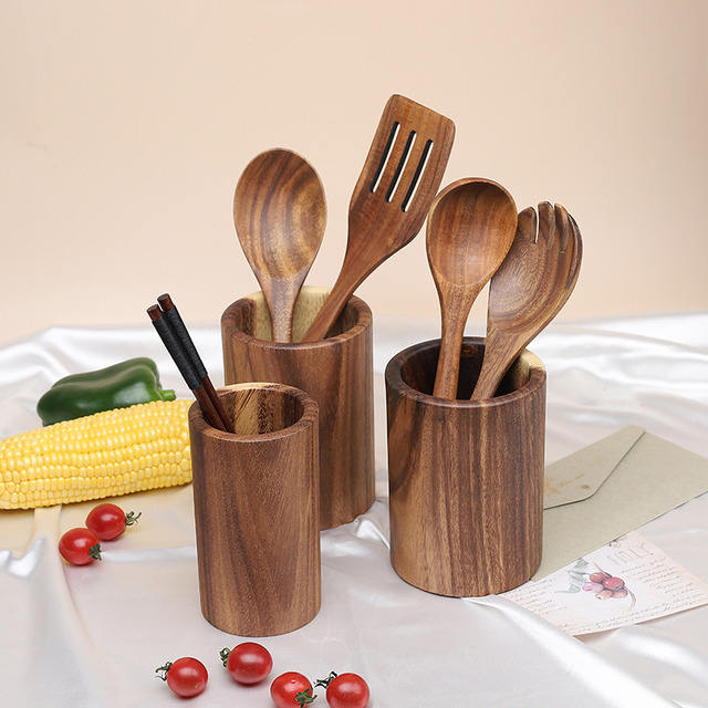 Handmade Eco-friendly 6pcs Nonstick Cookware Set Natural Teak Wooden Spatula Spoons for Kitchen Cooking Tableware