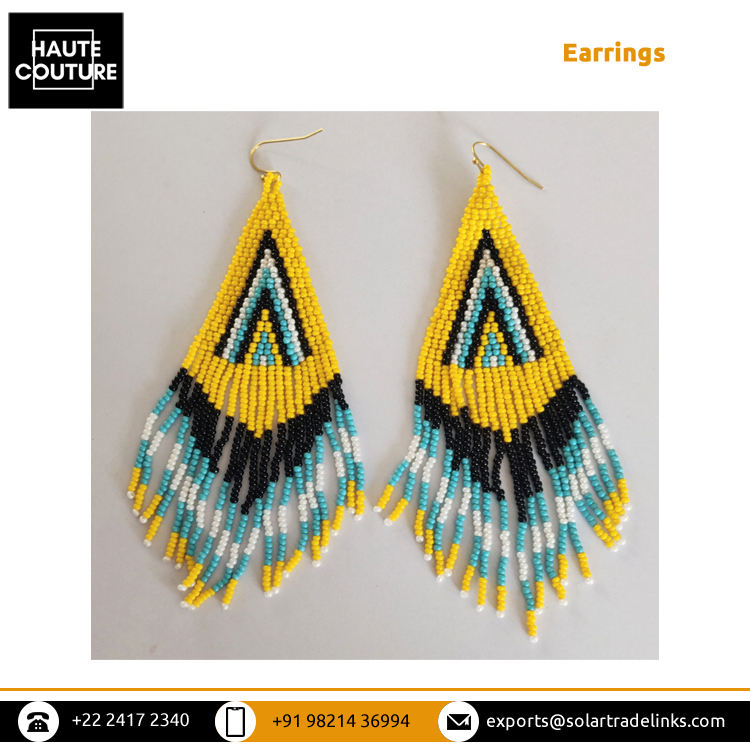 Handmade Elegant Yellow Beaded Drop Earrings Classic Triangle Tassels Design Suitable for All Occasions at Affordable Price