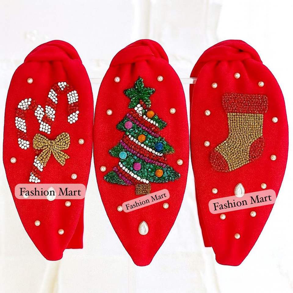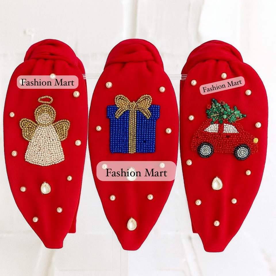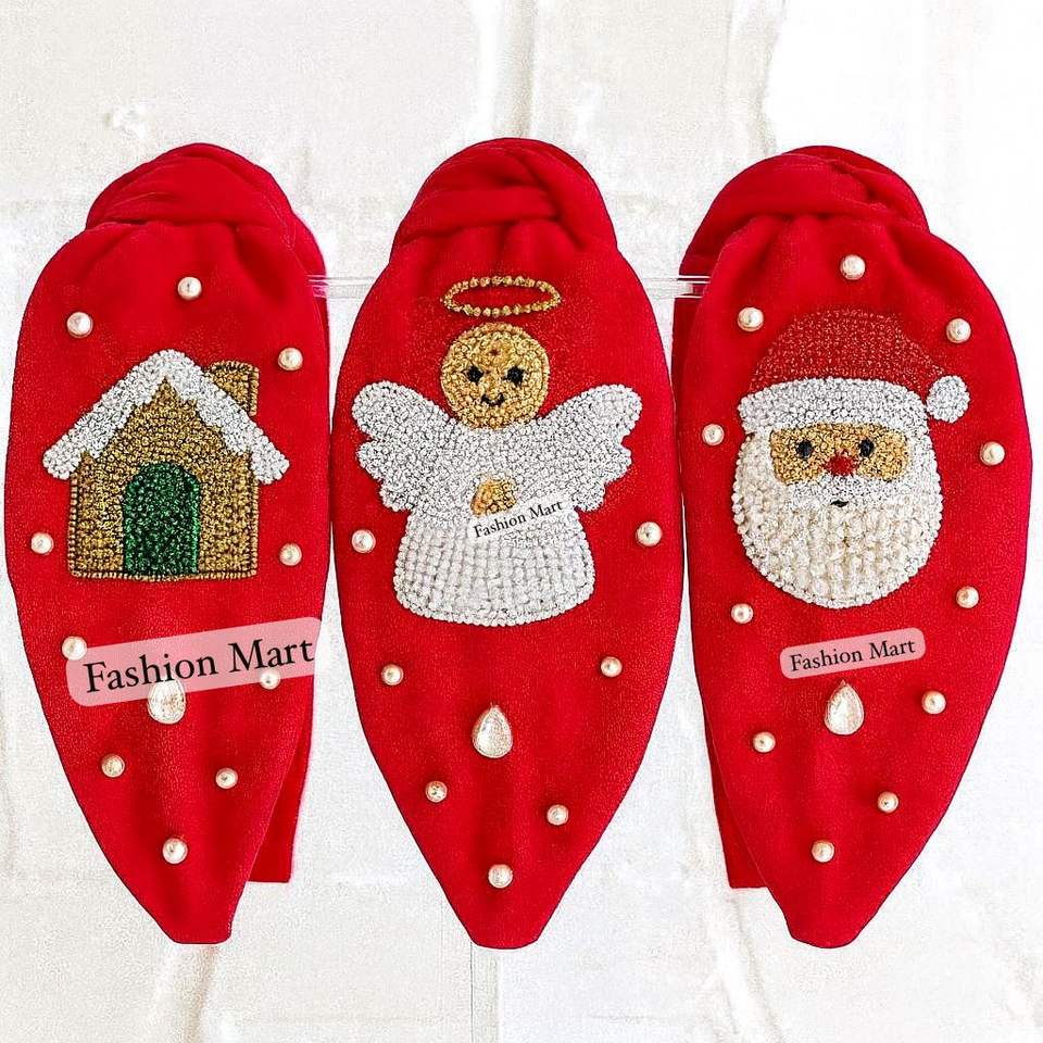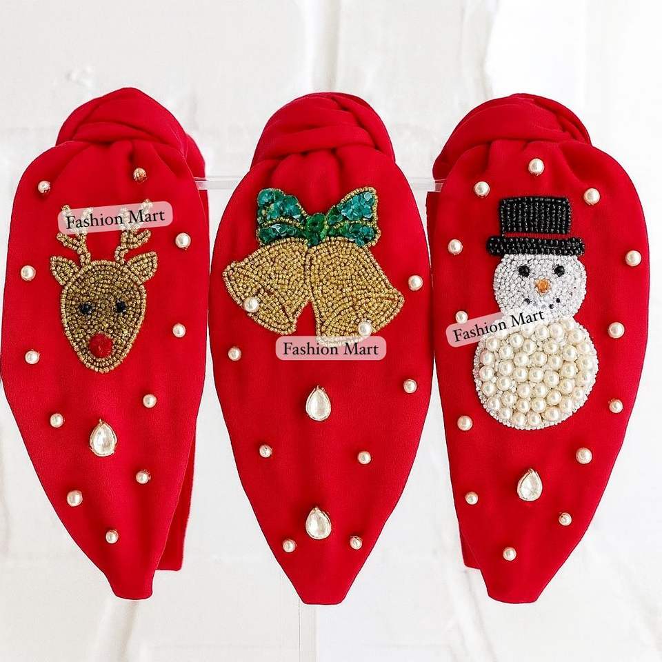 Handmade Embellished Christmas Hairbands- Pearl Beaded Snowman, Angel, Gift Present, Holly Leaves, And Christmas Candles