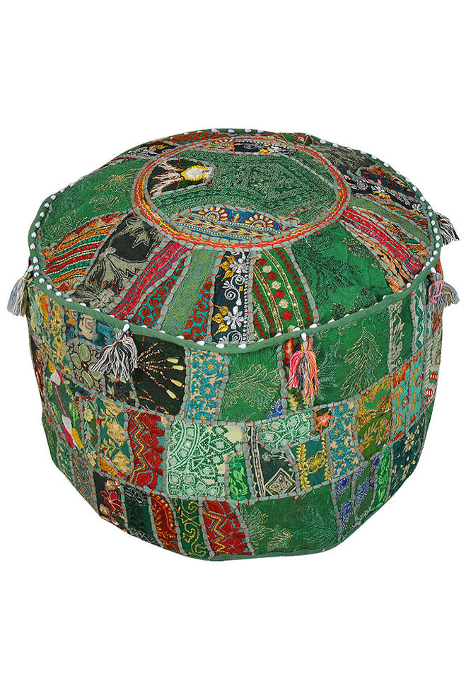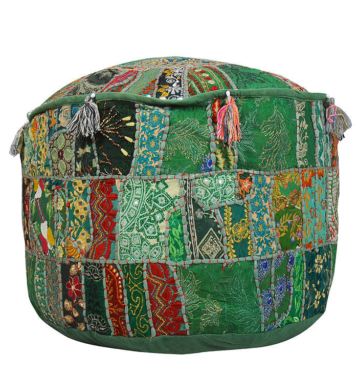 Handmade Embroidered Bean Bag Ottoman Pouf Covers Zipper Round Poufs for Home Decorative Sitting Pillows Sofa Usage