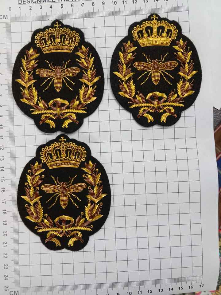 Handmade Embroidered Golden Crown Bee