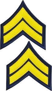 Handmade Embroidered Iron Sew-On Patch Badge Blue Chenille Fabric Sergeant Chevrons Star with PVC Plastic and Bead Decoration