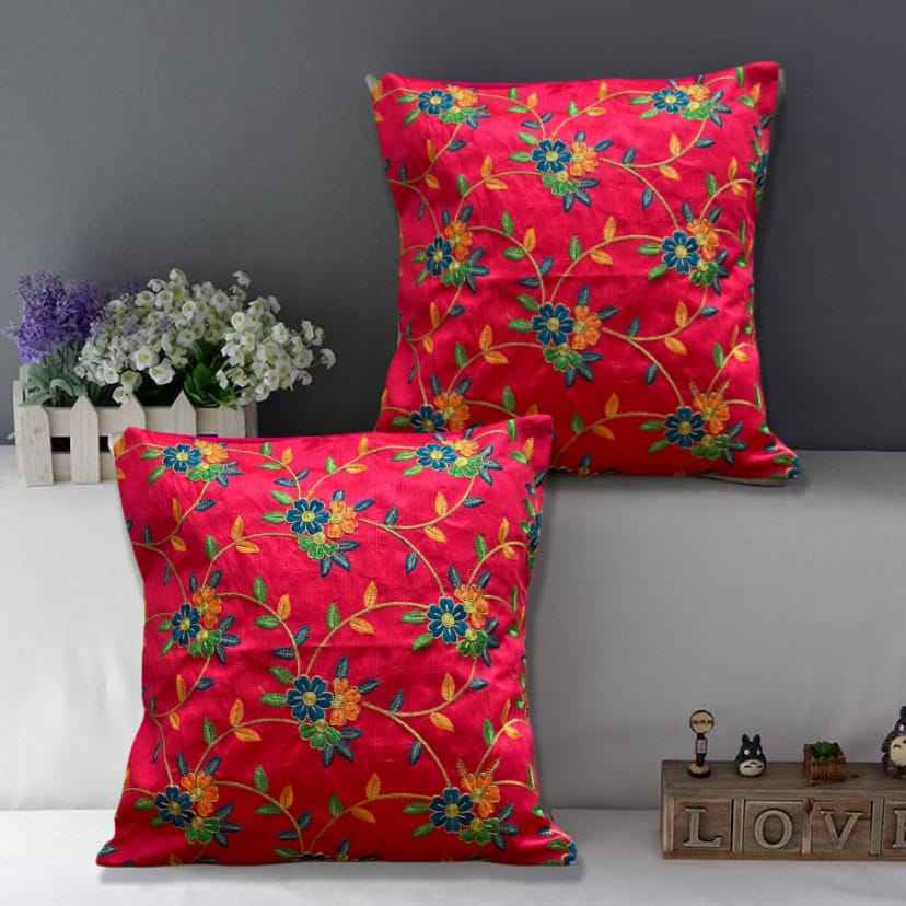Handmade Embroidered Suzani Cushion Cover Indian Uzbekistan Style Woolen Cotton Solid Print Pattern for Home or Hotel Use
