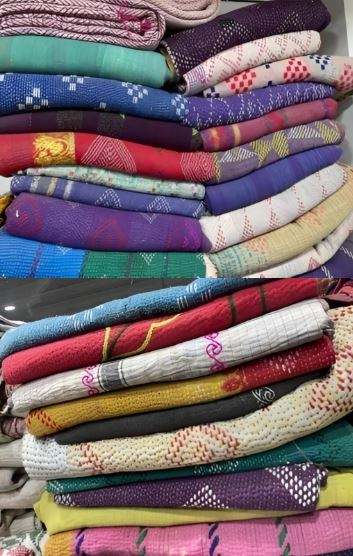 Handmade Embroidery Kantha Bed Cover Cotton Quilt Blanket Luxury Hand Stitched Decorative Bedding for