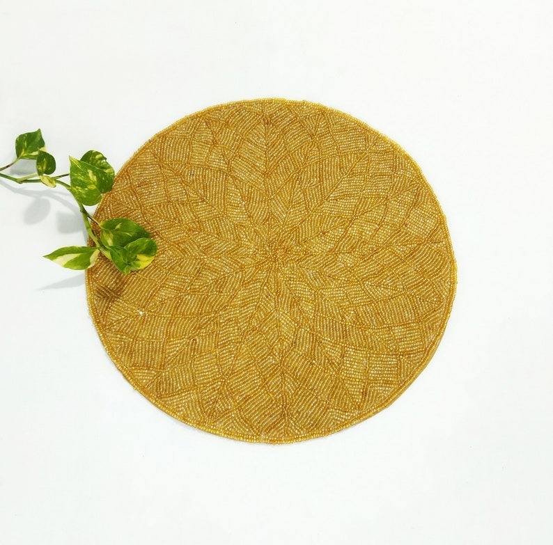 Handmade Embroidery Unique Design Seed Bead Eco-Friendly Luxury Wedding Table Placemats Different Designs Colors Portable