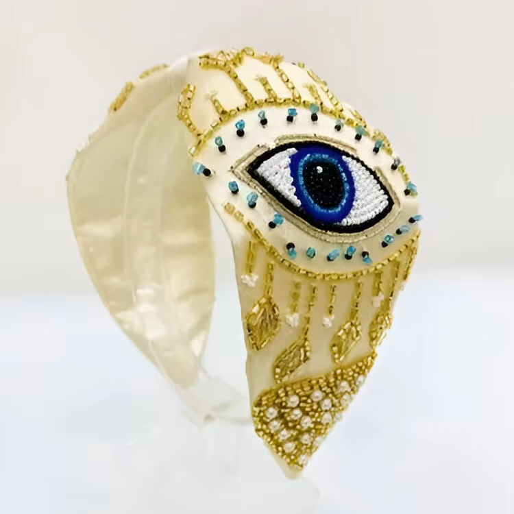 Handmade Embroidery White and Gold Sequin Beaded Headband Fashion Hair Accessory Custom Use for Women and Girls