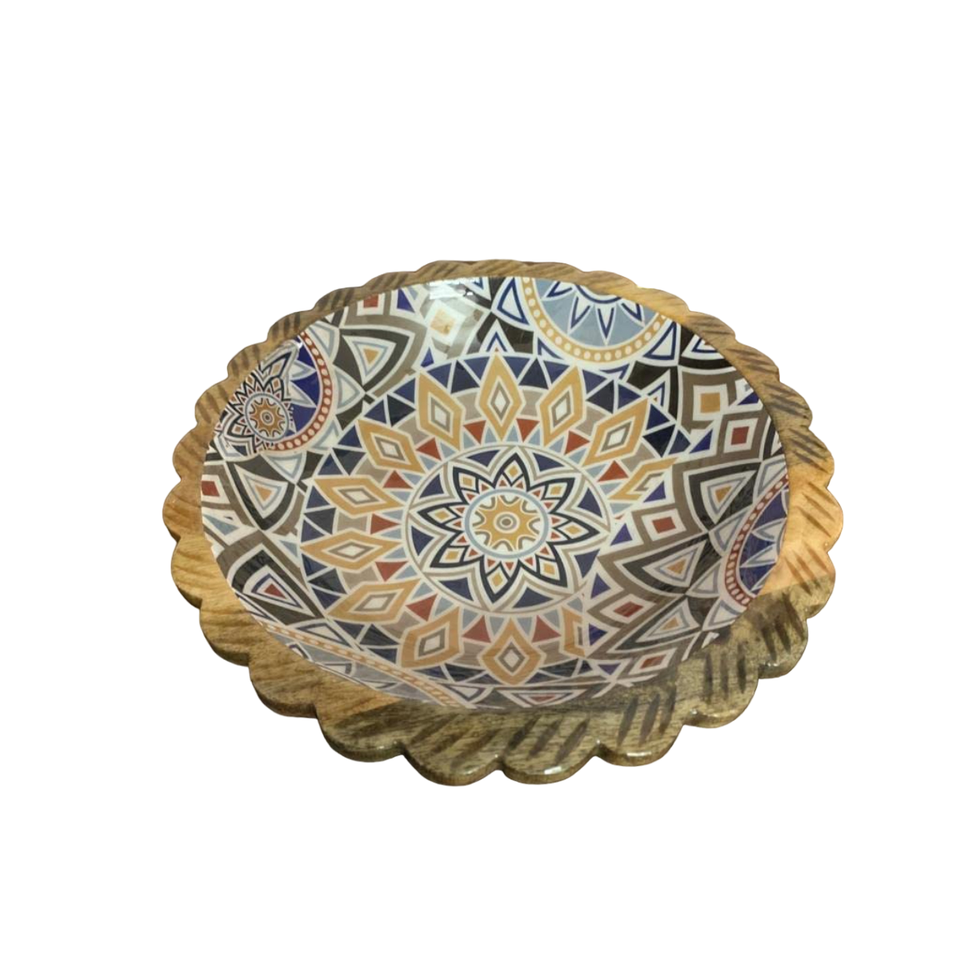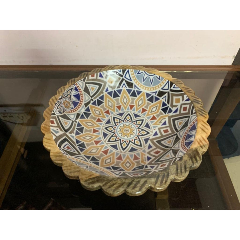 Handmade Enamel Wood Bowl Large Small Round Size Wooden Bowls Salad Dining Serving Best Quality Wood Printed Bowl Dinnerware