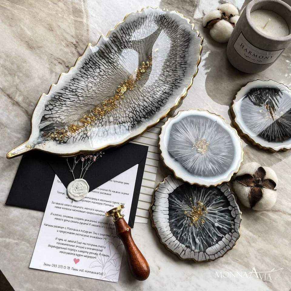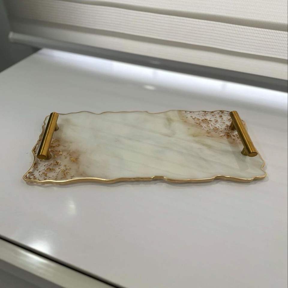 Handmade Epoxy Resin Serving Tray with Gold Handles for Home & Kitchen in wholesale