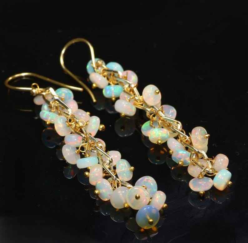 Keyword:Ethiopian Beaded Fire Opal Cluster Earrings Shine With