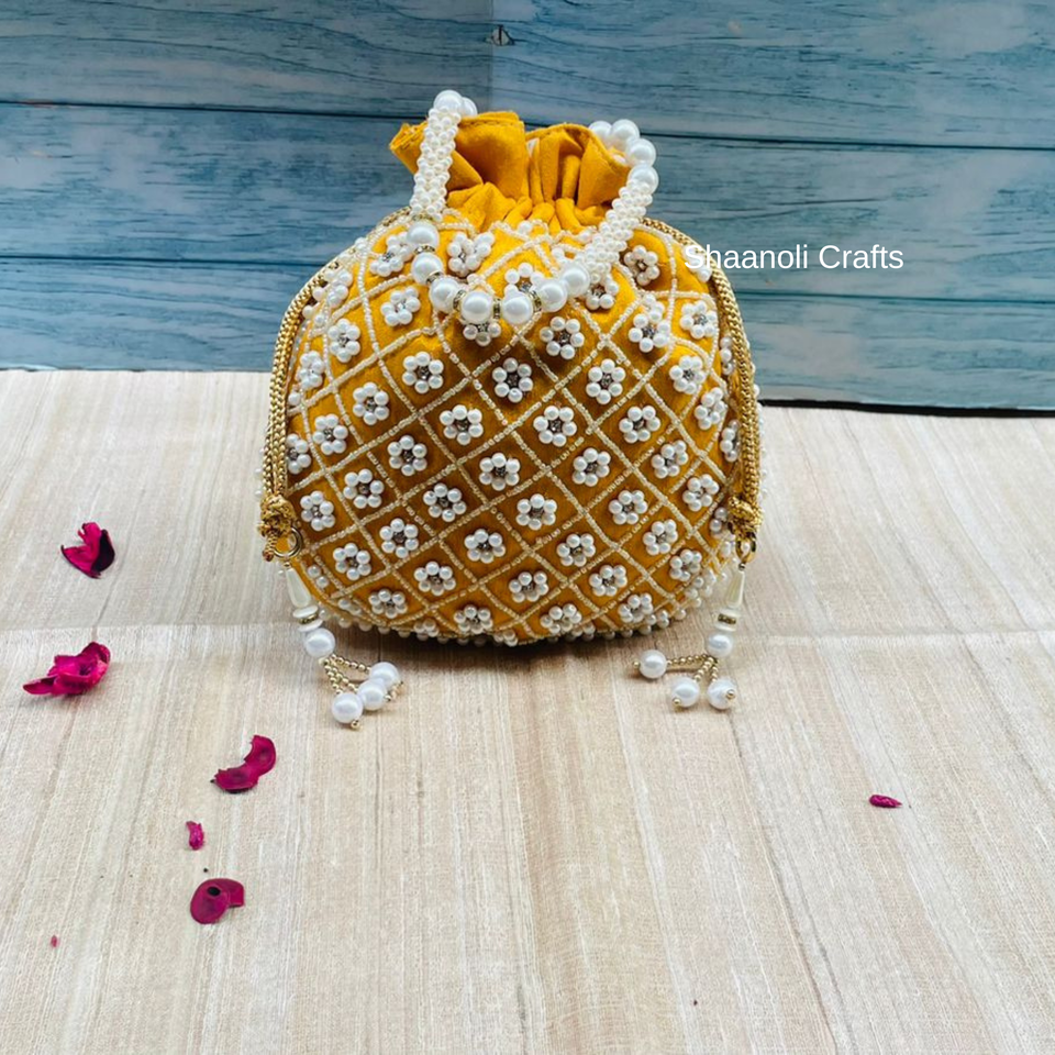 Product name:Raw Silk Pearl Work Potli Bags for Women