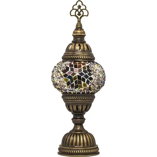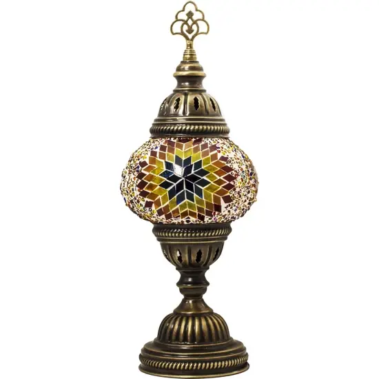 Handmade European Bronze Turkish Ottoman Mosaic Tiffany Stained Glass LED Desk Lamp Electric Bedroom Multicolored 5000K Daylight