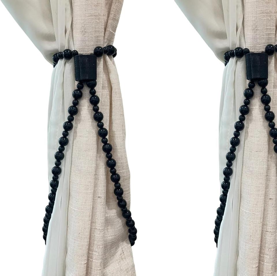 Handmade Evil Eye Pendant Bohemian Curtain Tie Backs with Wooden Beads for Farmhouse & Resort Decoration Easy Installation