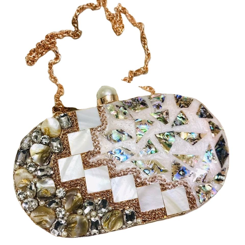 Handmade Exclusive Designer Evening Brass Clutch Bag Mother of Pearl Party Wedding Purse for Bridal and Bridesmaid