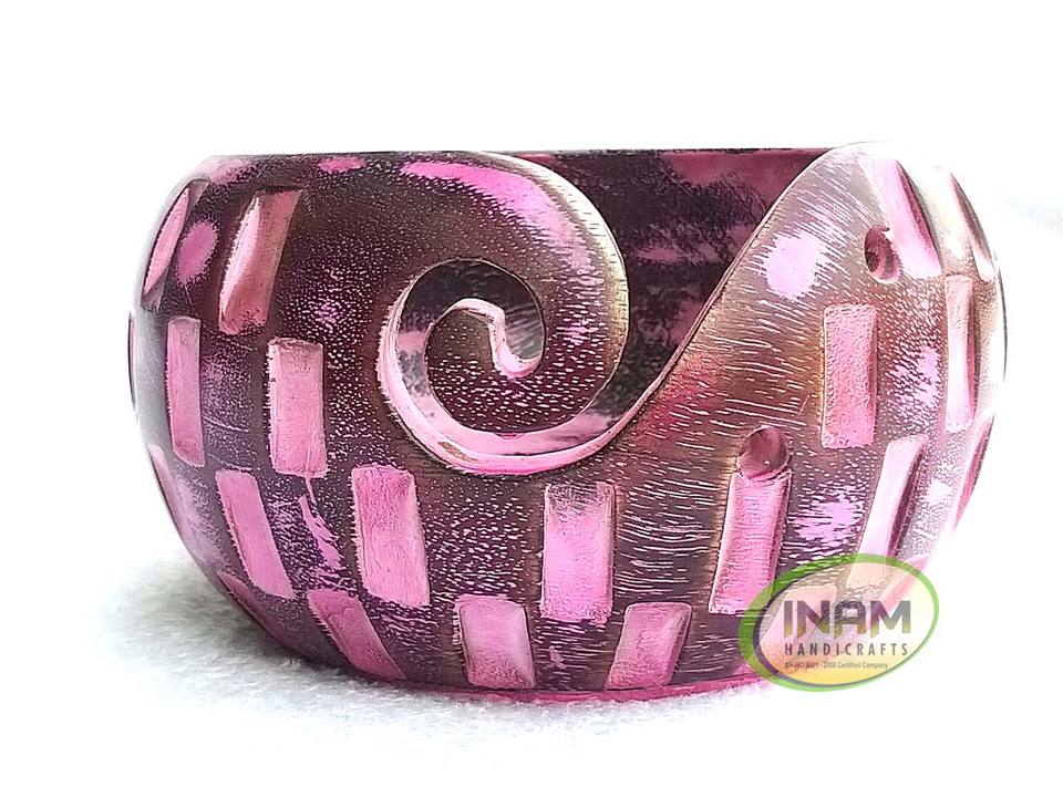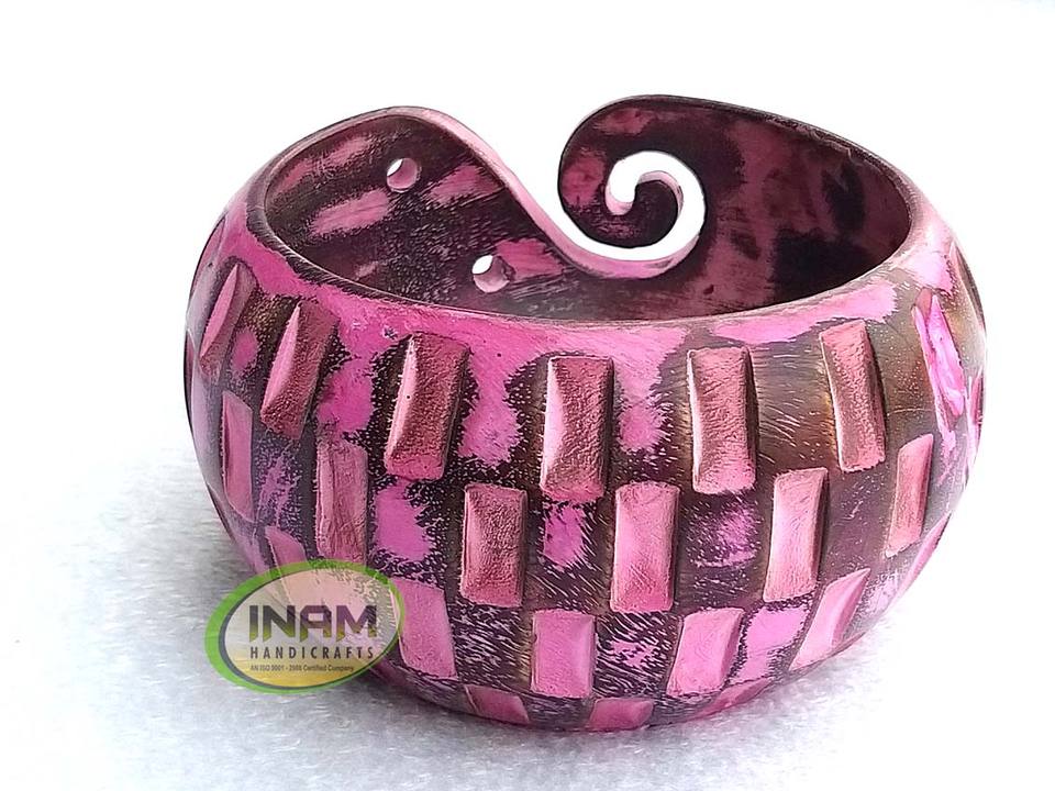 Handmade Exclusive Wooden Yarn Bowl with Intricate Inlay Work Simple Style 3mm Thickness