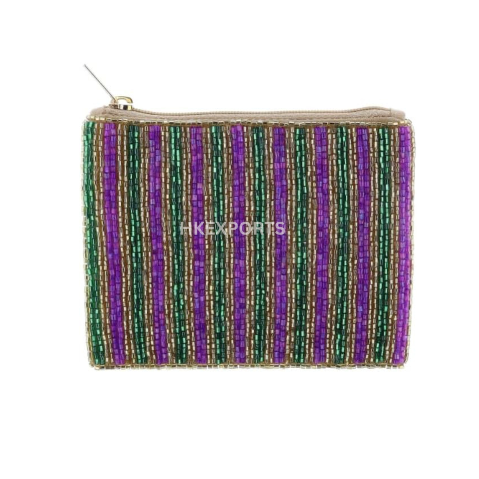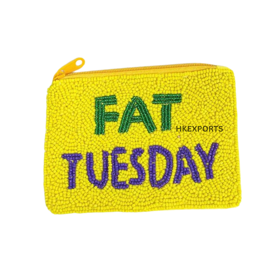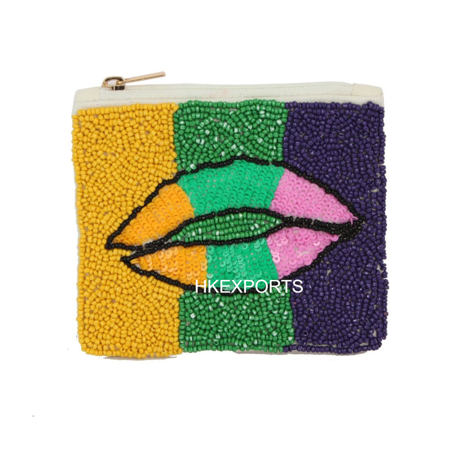 Handmade Women's Mardi Gras Beaded Coin Purse FAT TUESDAY Vibrant Multicolor Embroidered Beads Unique Zipper for Handbags