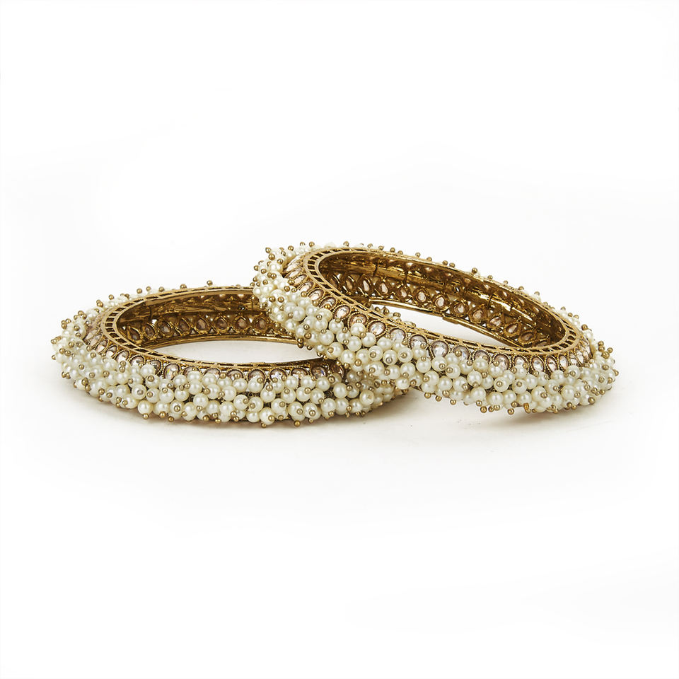 Handmade Famous Inspired Mehndi Plated Antique 2 Pc Pearl Bangles 213685 Wholesalers in India