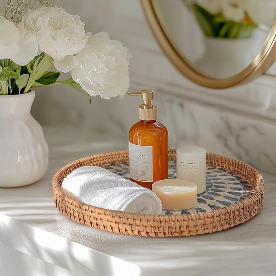 Product name:Mother of Pearl inlay Rattan Serving Tray with Rattan Coasters