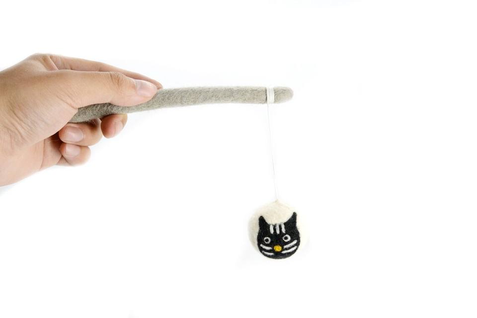 Handmade Felt Pet Toy - Felt Playing Products - Eco-friendly and Pet Friendly Toy - 5cm Felt Ball with Hanging Felt Stick