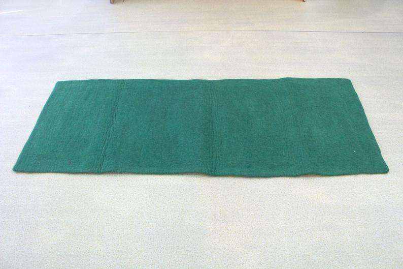 Handmade Felted Yoga Mat- Foldable and Non-slip Meditation Carpet- 160X60 cm Green Workout Mat - Made From 100% New Zealand Wool