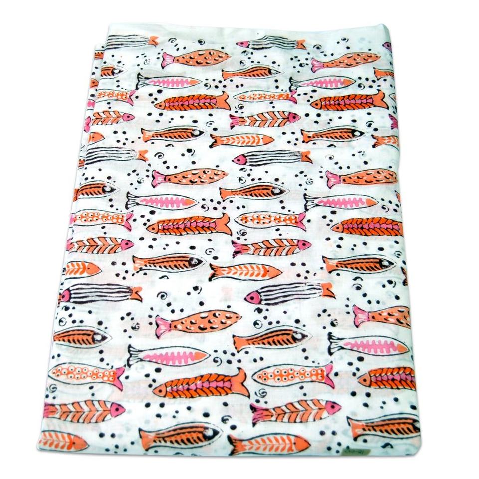 Handmade Fish Block Printed 100% Cotton Fabric White Base Soft Comfortable Kids Garment Shirts Curtains Wholesale