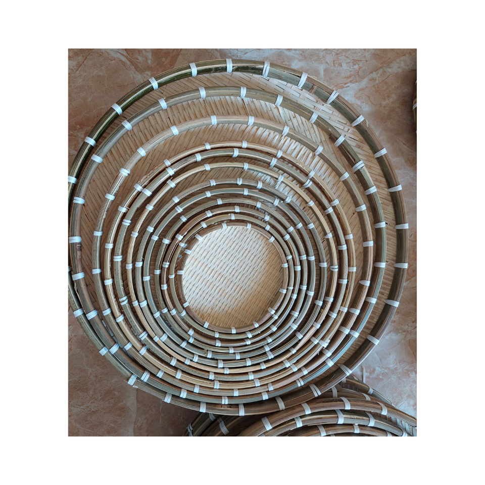 Handmade Flat Winnowing Basket Circle Bamboo Tray Home Decor Item High Quality Cheap Price From Vigi Farm
