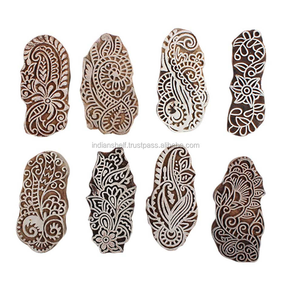 Handmade Floral Mix Wooden Printing Blocks for Canvas Printing Wooden Printing Blocks Set