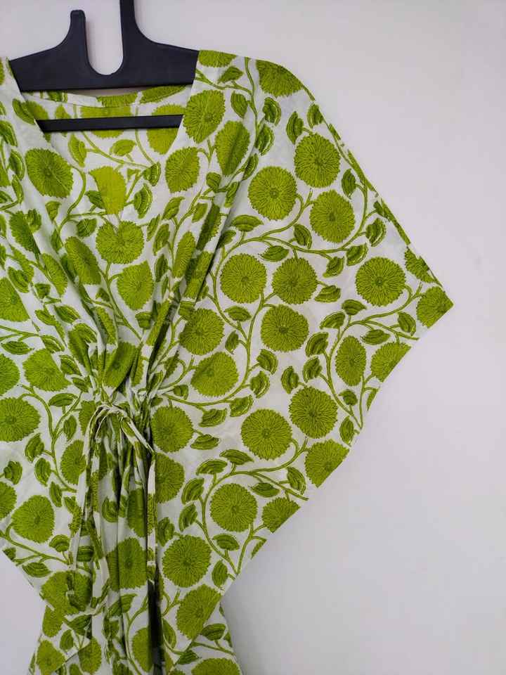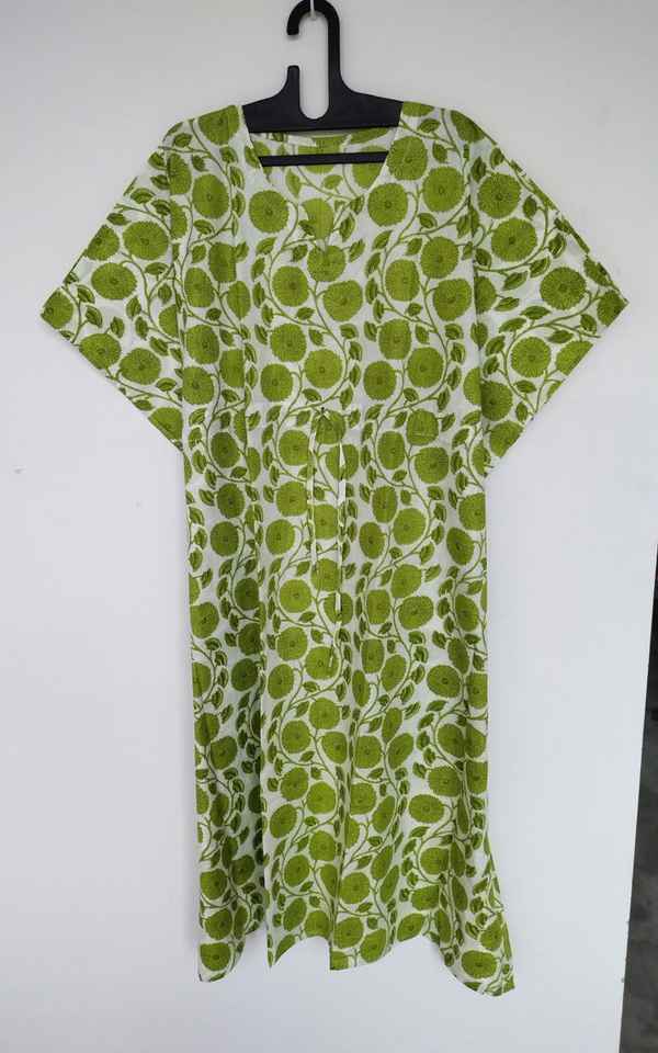 Handmade Floral Print Cotton Kaftan Maxi Dress Lightweight Beach Cover Up