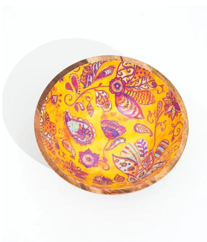 Handmade Flower Enamel Printed Acacia Wood Salad Bowl Mango Wood Enamel Printed Wooden Bowl & Spoon Pair by Blatant Exports