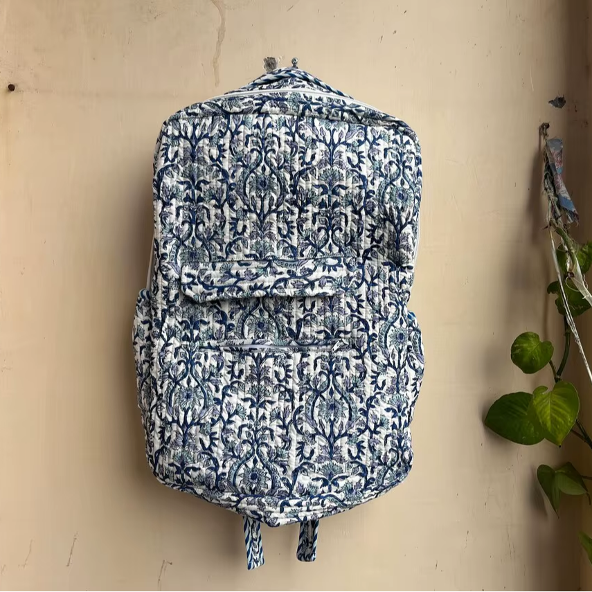 Handmade Foldable Large Quilted Cotton Backpack for Men Women Lightweight Travel School Summer/Spring Bohemian Style