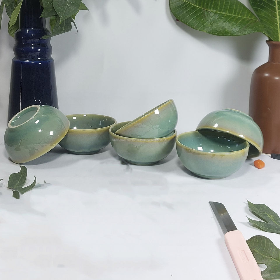 Handmade Forest Green small Bowl Set of 6 Ceramic Dishes with Glossy Glaze for Dips Spices Snacks or Table Decor Rustic Kitchen